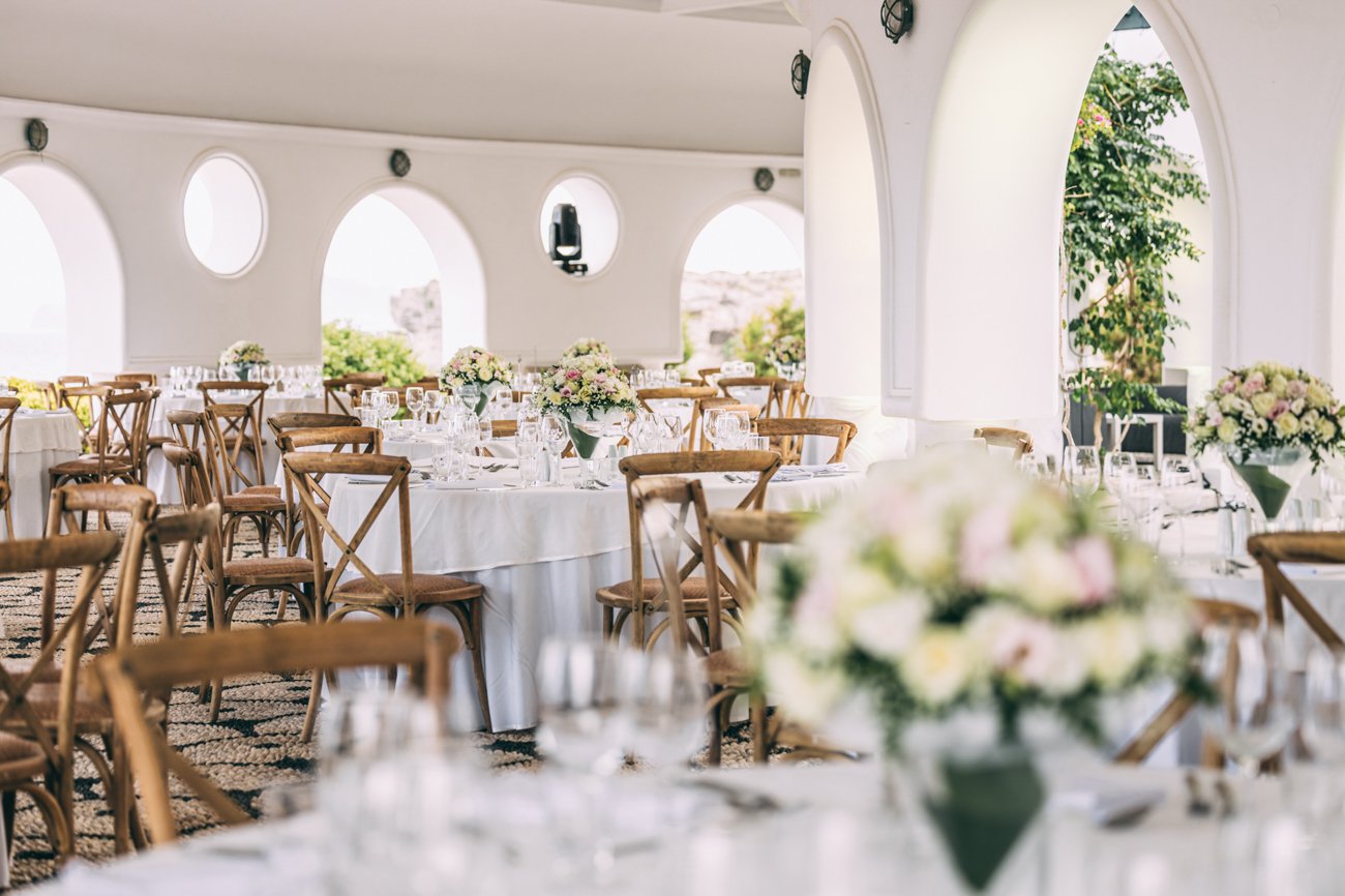 Kallithea Springs is a stunning location for any type of event and is definitely one of the most beautiful wedding venues in Rhodes. A mosaic path made of black and white pebbles leads to a beautiful rotunda that offers a panoramic view of Kallithea Bay. The landscape is complemented by an elliptical portico with circular openings surrounded by rocks and the natural beauty of the Aegean Sea. The Italian architecture adds magic to the atmosphere and makes every wedding in Rhodes special.