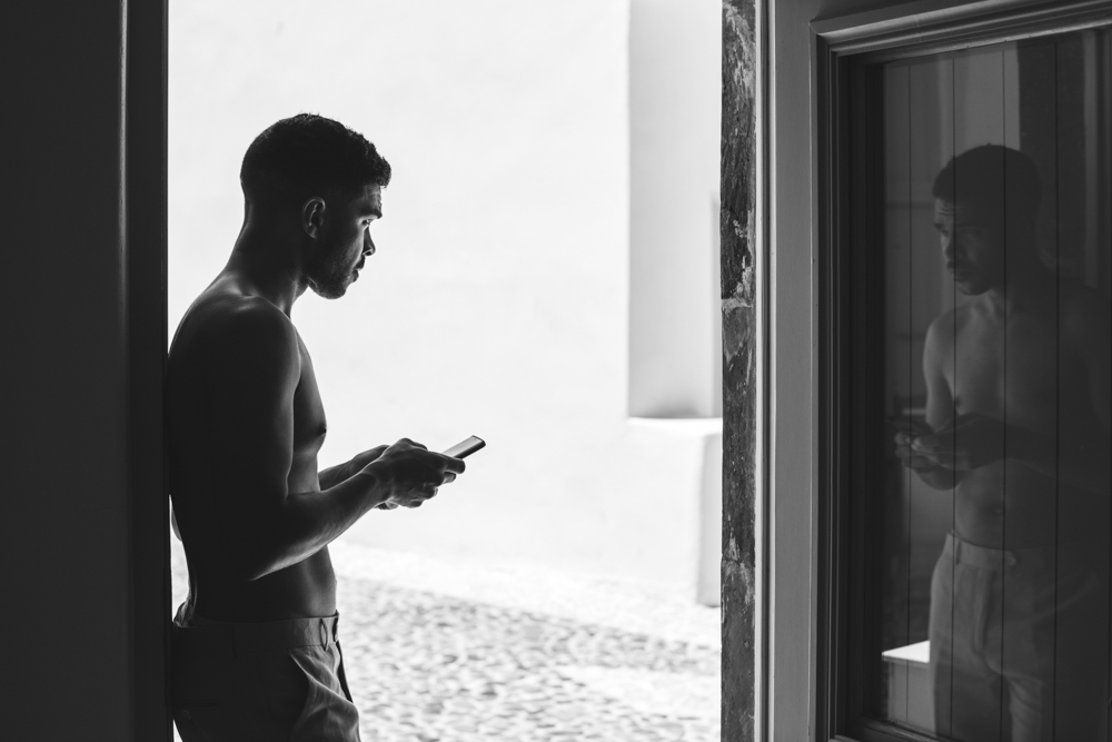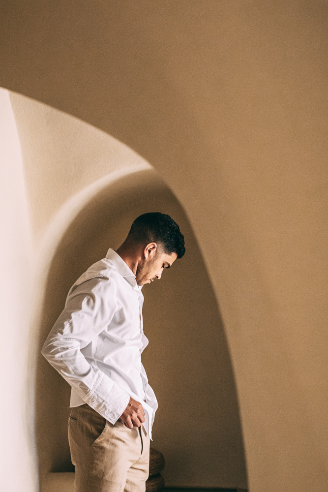 Here, the bride-to-be, joined by her mother, cherished tender moments. They carefully styled her hair into cascading curls and adorned her with flawless makeup. Their attention to detail reflected the love and excitement filling the air, capturing the essence of the quintessential Santorini wedding experience.