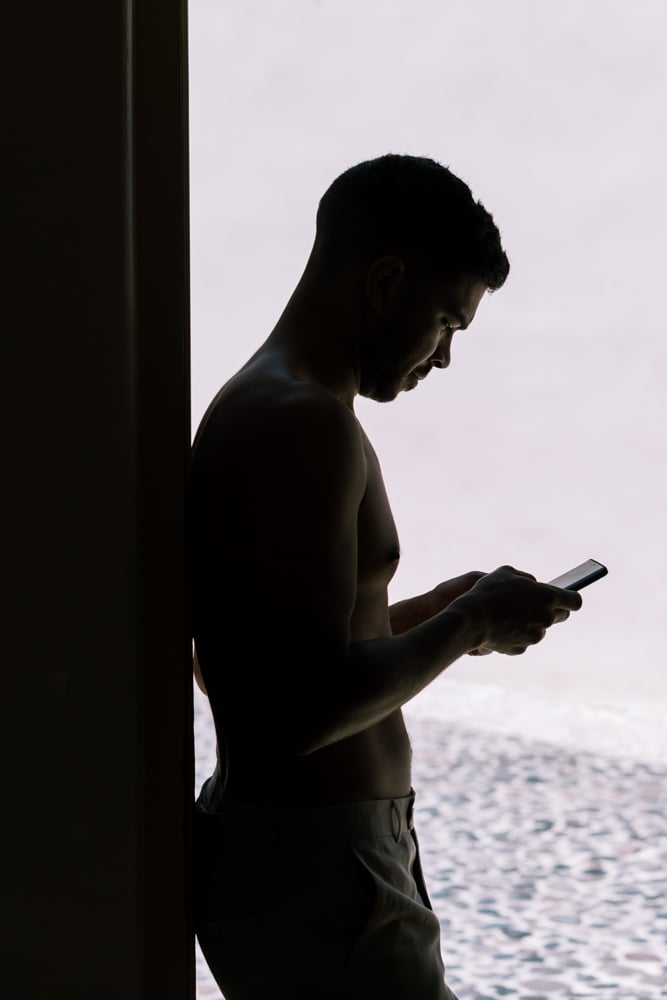 Meanwhile, the groom and his groomsmen enjoyed lighthearted bonding, filling the villa with laughter and funny stories. Amidst the jovial atmosphere, the groom took a pause to review his vows. He ensured they reflected his love and commitment, beautifully captured by me as a wedding photographer.